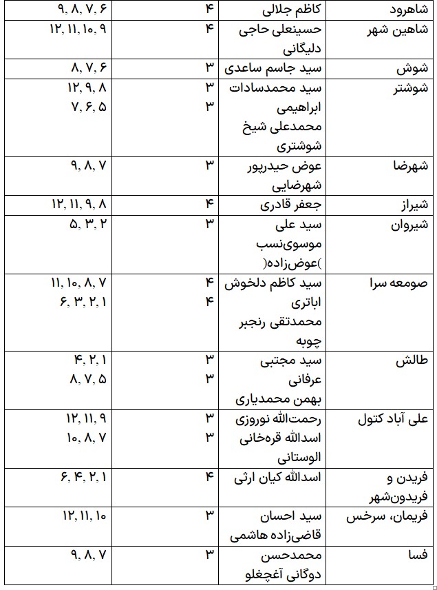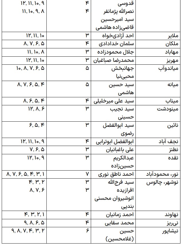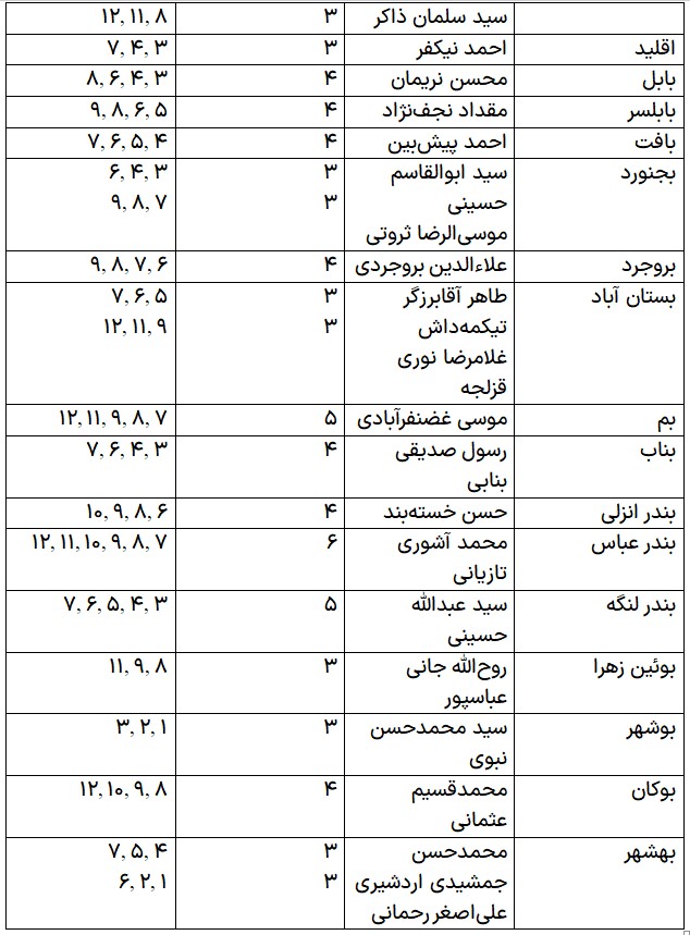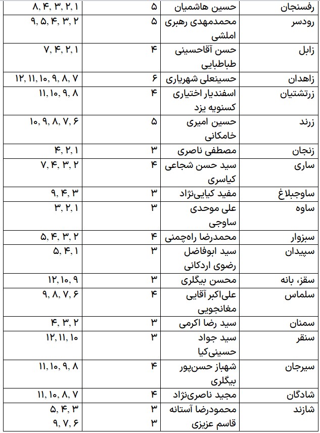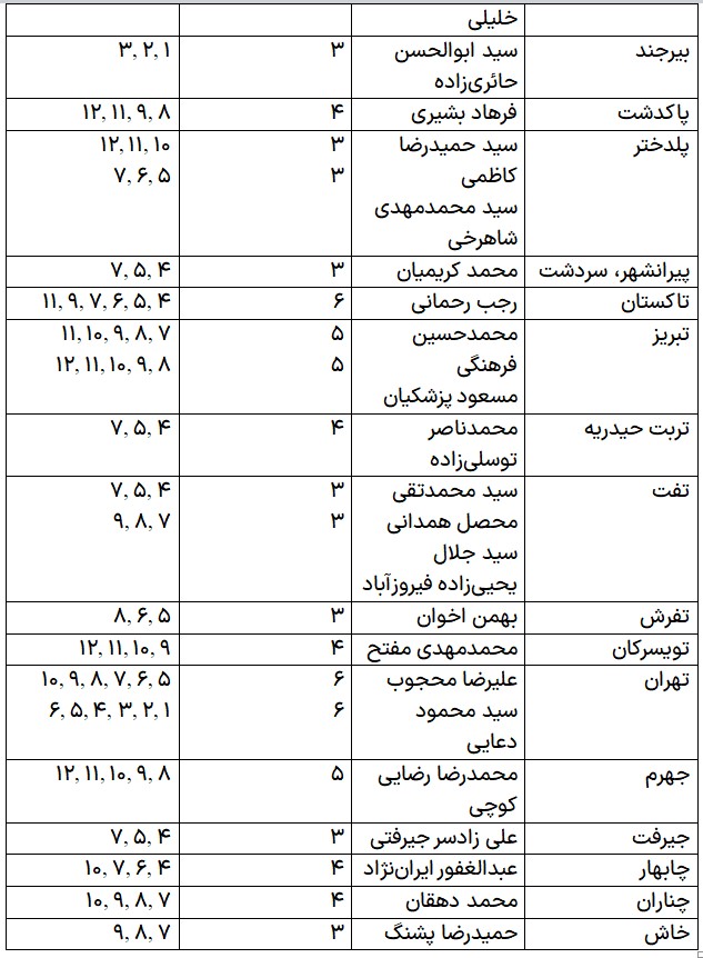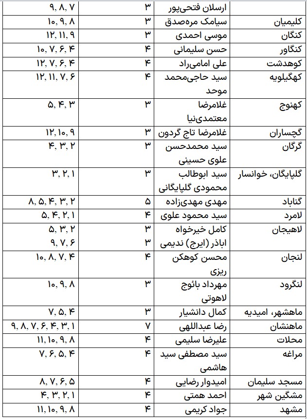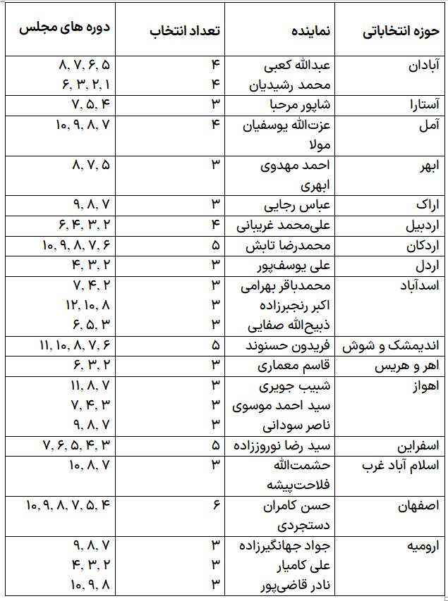 جدول ۱: فهرست نمایندگان مجلس شورای اسلامی که در حوزه انتخاباتی خود رکورددار انتخاب شدن میباشند