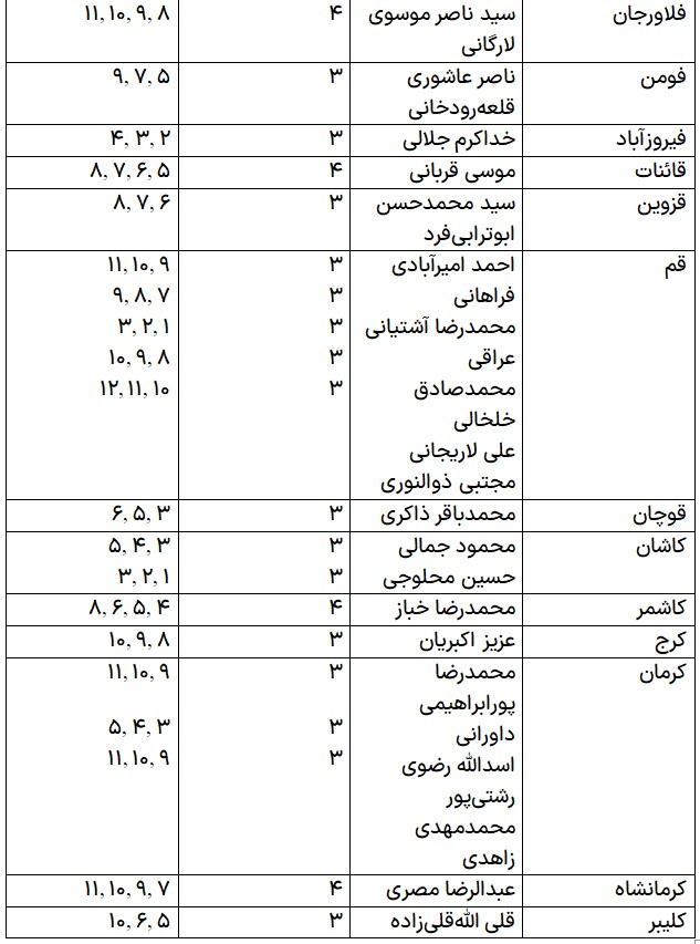 جدول شماره ۱ دربردارندهی فهرست نمایندگانی است که در دستکم ۳ دوره انتخابات از ۱۲ دوره انتخابات پسا انقلاب به مجلس راه یافتهاند. جاهایی هم که شُمار دورههای نمایندگی افراد پیشتاز با هم برابر بوده است، نام همهی آنها را آوردهام. در برآوردِ من، این فهرست بازنمای تمامی پیشتازان نمایندگی در سراسر کشور است. پژوهشهای میدانی دربارهی این افراد و قلمروهای انتخاباتی آنان میتواند سرمایهی علمی ما را در پهنهی جامعهشناسی سیاسی ایران را ژرفتر کند و ما را در پاسخیابی به پرسشهای زیر یاری دهد: