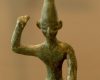 شرح تصویر: بت بعل و کودکی که قربانی میشود – این اثر باستانی در مکان acropolis in Ras Shamra-Ugarit یافت شده است.